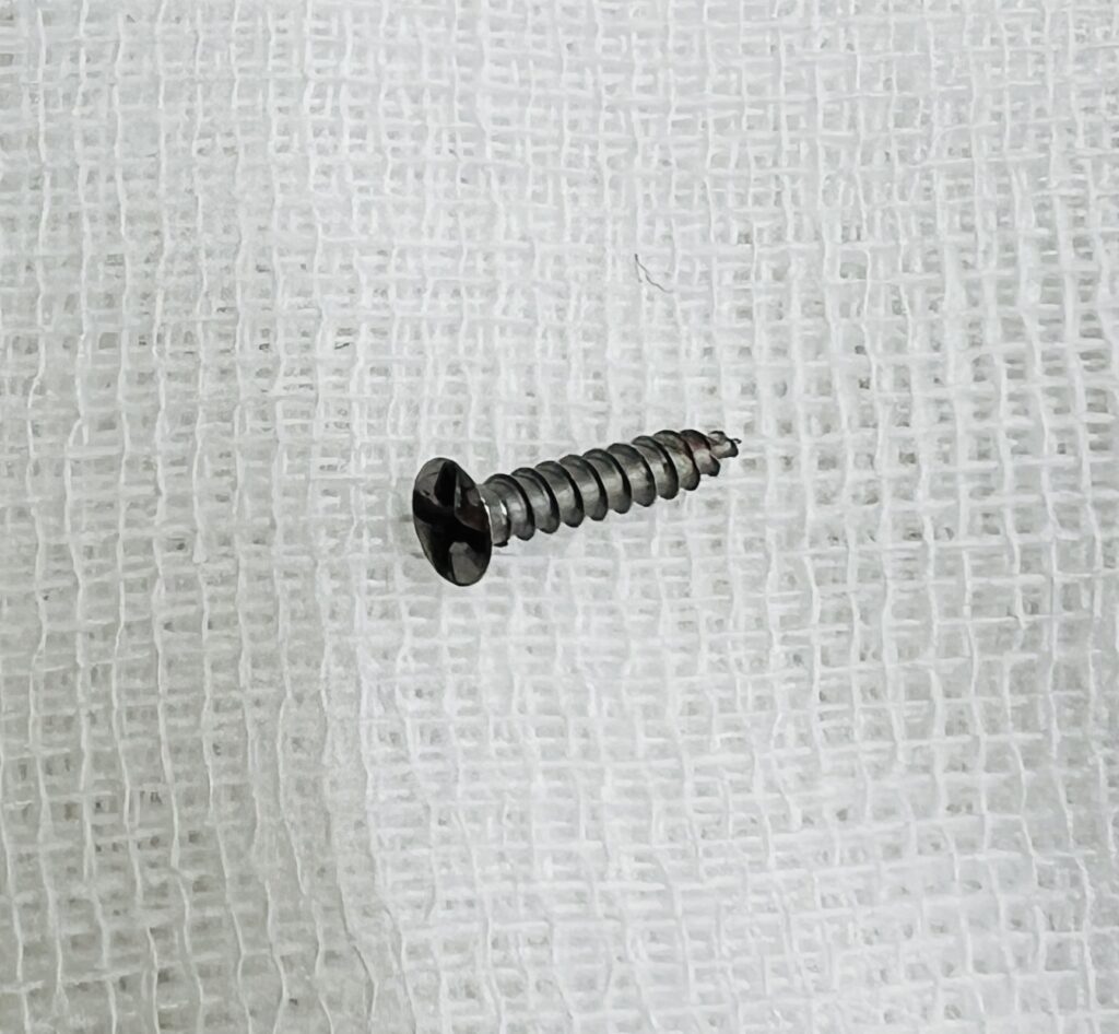 術後1ヵ月以降であれば検診時に外来にて局所麻酔を行って除去します。今回のケースはご本人が長めに置いておきたいと言う希望があったため術後6ヶ月で除去を行っています。エンドタインという吸収性のピンを使用した場合には抜去の必要はありません。